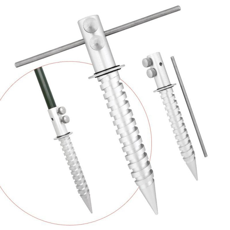 Suport metalic robust pentru umbrela/shelter, cu lungimea de 25cm, cu filet cu pasul mare. Tija suplimentara se foloseste ca parghie pentru gaurirea solului. Caracteristici: Material: Metal; Lungime: 25cm.