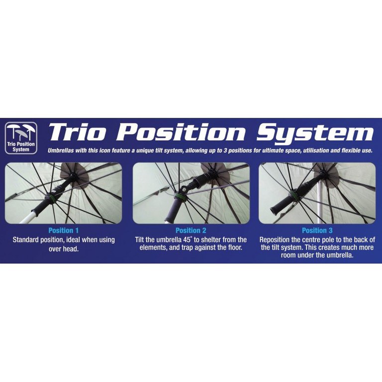 Este o umbrela fabricata din material Nu-Tex PU impermeabil si rezistent la uzura, ce beneficiaza de un diametru generos de 2.50m. Permite gazduirea unui scaun de pescuit, dar si a echipamentului aferent. Cusaturile sunt lipite si etanse iar capatul spitelor este prevazut cu protectie anti-sfasiere. Lungimea piciorului detasabil din aluminiu masoara 111cm, iar diametrul acestuia 19mm. Partea de sus a tijei principale dispune de sistem de inclinare reglabil. Este o umbrela excelenta pentru zilele toride de vara, protejand eficient impotriva radiatiilor UV. Caracteristici: Diametru: 250cm; Lungime de transport: 140cm; Lungime picior: 111cm; Diametru picior: 19mm; Schelet stabil si rezistent; Tija cu sistem de inclinare reglabil; Material: Nu-Tex PU; Cusaturi lipite si etanse; Greutate: 2.8kg.
