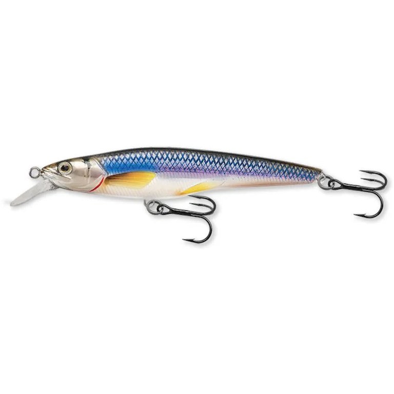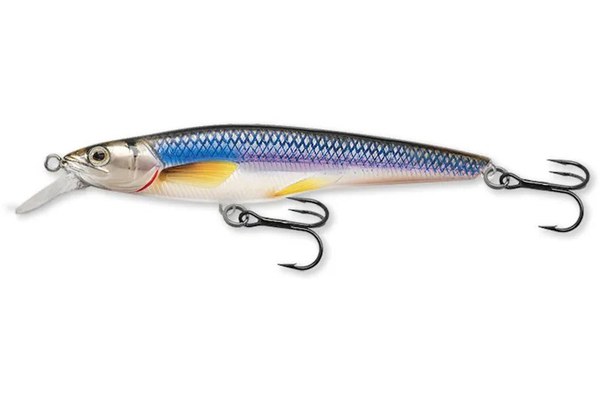 Rainbow Smelt este o specie comuna de minnow vizata de rapitorii din apele nordice precum walleye, somon, pastrav si bass cu gura mica. Se gaseste mai ales in lacurile din nord si in si in jurul Marilor Lacuri. Naluca jerkbait ce imita acest peste are un sistem de lestare ce isi schimba pozitia la lansare, asigura starea de suspending si sunetul specific de ciocnire intre bilele lest. Jerkbait-ul este disponibil in variantele shallow si deep si este ideal pentru lansari sau trolling. Caracteristici: Tip naluca: vobler; Tip vobler: minnow; Varianta: suspending; Barbeta: Shallow; Lungime: 9.1cm; Greutate: 9g; Adancime activare: 0.9-1.2m; 2 x ancore triple; Sunet specific de ciocnire intre bilele lest; Culoare: Silver/Blue.