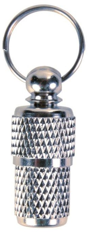Adresierul din metal rezistent este usor de atasat la zgarda animalului de companie.\nPartea superioara al adresierului poate fi desurubata si se introduce o bucata mica de hartie cu detaliile de contact al proprietarului. \nDisponibil in culoarea cromata.\n.