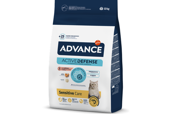 Susține barierele naturale ale pisicii tale. Hrană Super Premium, completă și echilibrată, special formulată pentru pisicile adulte cu sensibilități digestive.\nFormulă exclusivă consolidată cu:\n\nPREBIOTICE - acestea asigură nutriția bacteriilor benefice din microbiomul intestinal, producând nutrienți care oferă energia necesară pentru celulele peretelui intestinal și contribuie la sănătatea digestivă.\nFIBRE - fibre din grâu, inclusiv fibre solubile care sunt fermentate și degradate de bacterii, susținând astfel echilibrul microbiomului intestinal.\nIMUNOGLOBULINE ACTIVE - Oferă o imunitate pasivă, îmbunătățesc digestia și susțin menținerea sănătății intestinale. \n\nCu ingrediente de înaltă calitate:\n\nPrimul ingredient – carnea proaspătă de somon.\nCu proteine animale provenite din somon\nCu orez.\nFĂRĂ COLORANȚI ARTIFICIALI SAU CONSERVANȚI \n\nSensitive\n\nDigestie ușoară și îngrijirea pielii\nSOMON CA SINGURA SURSĂ DE PROTEINE ANIMALE\nCU OREZ: UN INGREDIENT FOARTE UȘOR DIGERABIL\nOMEGA-3 &6: CONTRIBUIE LA SĂNĂTATEA PIELII & FRUMUSEȚEA BLĂNII\nFORMULATĂ FĂRĂ SOIA SAU OU \n\nCARACTERISTICI ȘI BENEFICII\nSensitive\n\nDIGESTIE UȘOARĂ – cu ingrediente foarte ușor digerabile.\nÎNGRIJIREA PIELII & BLĂNII – cu acizi grași esențiali omega-3 și omega-6.\nFĂRĂ SOIA SAU OU – formulată fără aceste ingrediente.