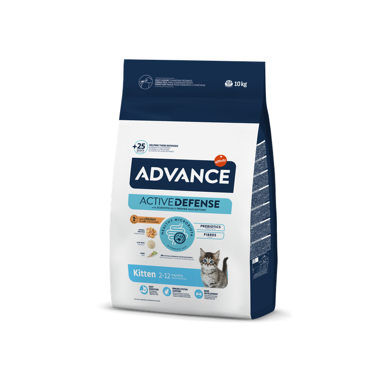2- 12 luni - Hrană Super Premium, completă și echilibrată, special recomandată pentru pisicuțe (începând cu 2 până la 12 luni) și femele gestante sau cu lactație. Susține barierele naturale ale pisicii tale.\nFormulă exclusivă consolidată cu:\n\nPREBIOTICE -Acestea asigură nutriția bacteriilor benefice din microbiomul intestinal, producând nutrienți care oferă energia necesară pentru celulele peretelui intestinal și contribuie la sănătatea digestivă.\nFIBRE - Fibre vegetale care susțin tranzitul intestinal. \n\nCu ingrediente de înaltă calitate:\n\n1 ingredient este puiul proaspăt.\nCu proteine animale\nCu orez\nFibre\nFĂRĂ COLORANȚI ARTIFICIALI SAU CONSERVANȚI\nCu NUCLEOTIDE CU PROFIL DE COLOSTRU MATERN - Îmbunătățesc eficiența replicării celulare, susținând dezvoltarea optimă a sistemului digestiv și imunitar.\nIMUNOGLOBULINE ACTIVE - Oferă o imunitate pasivă, îmbunătățesc digestia și susțin menținerea sănătății intestinale. \n\nCARACTERISTICI ȘI BENEFICII\nCREȘTERE OPTIMĂ – bogată în calorii și proteine de înaltă calitate, vitamine, minerale și acizi grași esențiali.\nDIGESTIE UȘOARĂ – cu ingrediente foarte ușor digerabile.\nSUSȚINEREA SISTEMULUI IMUNITAR – cu prebiotice, nucleotide și imunoglobuline active.\nDEZVOLTAREA OASELOR – cu vitamine și minerale.