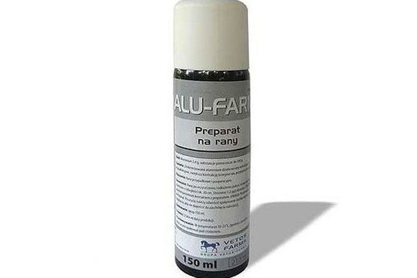 Spray cu aluminiu. Aluminiul micronizat actioneaza asupra plagilor ca protector, antibacterian, creste contractia marginilor plagilor si accelereaza procesul de vindecare.\nIndicatii: Plagi si plagi postoperatorii.