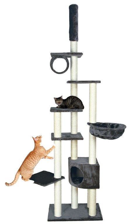 Ansamblul Trixie Madrid invelit in plus dispune de multiple nivele de joaca si sistem de prindere de tavan.\nDimensiuni: \n- Baza: 68 x 44 cm\n- Inaltime: 245 - 270 cm\n- Diametru: 9 cm