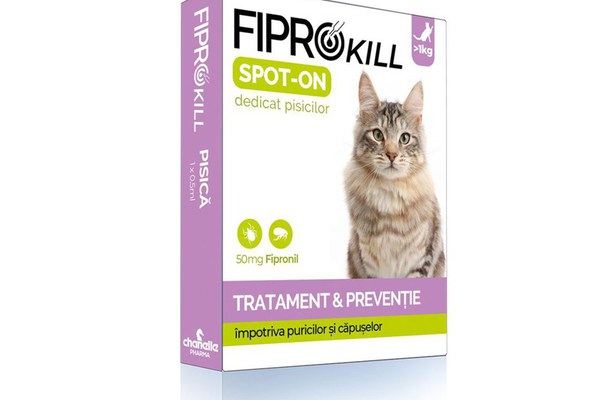 Soluție spot-on pentru pisici. \nO pipetă de 0,5 ml conţine:\nSubstanţă activă:\nFipronil 50 mg\nExcipienţi:\nButilhidroxianisol E320 0,1 mg\nButilhidroxitoluen E321 0,05 mg \n\nINDICAŢII\n\nTratamentul infestațiilor cu purici (Ctenocephalides spp.).\nProdusul are eficacitate insecticidă persistentă timp de până la 5 săptămâni împotriva puricilor (Ctenocephalides spp.).\nProdusul nu a demonstrat un efect acaricid imediat împotriva căpuşelor, dar a demonstrat efect acaricid persistent de până la 2 săptămâni împotriva Ixodes ricinus şi de o săptămână împotriva Dermacentor reticulatus şi Rhipicephalus sanguineus. Dacă la momentul aplicării sunt prezente căpuşe aparținând acestor specii, se poate ca nu toate căpuşele să fie ucise în primele 48 de ore, dar ele pot fi ucise într-o săptămână.\nProdusul poate fi folosit ca parte a strategiei tratamentului contra dermatitei alergice produsă de purici (DAP), unde aceasta a fost diagnosticată în prealabil de medicul veterinar. \n\nCONTRAINDICAŢII\n\nÎn absenţa datelor de specialitate, produsul nu trebuie folosit la pisici cu vârsta mai mică de 2 luni și / sau care cântăresc mai puţin de 1 kg.\nA nu se utiliza la animale bolnave (boli sistemice, febră) sau în convalescenţă.\nA nu se utiliza la iepuri, deoarece poate produce reacţii adverse şi chiar moartea animalului.\nA nu se utiliza în caz de hipersensibilitate la substanţa activă sau la oricare dintre excipienţi. \n\nREACŢII ADVERSE\n\nFrecvența reacțiilor adverse este definită utilizând următoarea convenție:\n- Foarte frecvente (mai mult de 1 din 10 animale tratate care prezintă reacții adverse)\n- Frecvente (mai mult de 1 dar mai puțin de 10 animale din 100 animale tratate)\n- Mai puțin frecvente (mai mult de 1 dar mai puțin de 10 animale din 1000 animale tratate)\n- Rare (mai mult de 1 dar mai puțin de 10 animale din 10 000 animale tratate)\n- Foarte rare (mai puțin de 1 animal din 10 000 animale tratate, inclusiv raportările izolate)\nDacă animalul linge locul de aplicare, o scurtă perioadă de hipersalivaţie poate fi observată datorită în principal naturii excipientilor.\nÎntre reacţiile adverse suspecte, extrem de rare, după utilizare s-au raportat la locul de aplicare, reacţii cutanate tranzitorii (descuamare, alopecie locală, prurit, eritem) şi prurit sau alopecie generală. În mod excepţional s-au observat după utilizare, hipersalivaţie, simptome neurologice reversibile (hiperestezie, depresie, simptome nervoase) sau vomă. \nDacă observați orice reacție adversă, chiar și cele care nu sunt deja incluse în acest prospect sau credeți că medicamentul nu a avut efect vă rugăm să informați medicul veterinar. \n\nSPECII ŢINTĂ\n\nPisici. \n\nPRECAUŢII SPECIALE PENTRU DEPOZITARE\n\nA nu se lăsa la vederea și îndemâna copiilor.\nA nu se păstra la temperatură mai mare de 25°C.\nA se păstra la loc uscat. \nA se păstra în ambalajul original.\nNu utilizați acest produs medicinal veterinar după data de expirare înscrisă pe cutie și pipetă după "EXP". Data de expirare se referă la ultima zi a lunii. \n\nATENŢIONĂRI SPECIALE\n\nProdusul nu previne ataşarea căpușelor de animale. Dacă animalul a mai fost tratat înainte de expunerea la căpușe, acestea vor fi ucise în primele 24-48 de ore după ataşare. Aceasta se va întâmpla în mod obişnuit înainte de a se hrăni căpușele, minimalizând, dar nu excluzând riscul transmiterii de boli. Odată moarte, de cele mai multe ori, căpușele vor cădea de pe animal, iar căpușele rămase pot fi scoase cu uşurinţă.\nPuricii de pe animale, adesea infestează coşul animalului, patul sau zonele normale de odihnă, cum ar fi covoarele sau canapelele, ce trebuie tratate, în cazul infestaţiilor masive şi la începutul măsurilor de control, cu un insecticid potrivit şi aspirate în mod regulat.\nEvitaţi înotul / îmbăierile frecvente sau şamponarea animalului, deoarece menţinerea eficienţei produsului în aceste cazuri nu a fost testată.\nPentru controlul infestațiilor cu purici în adăposturile cu mai multe specii de animale, toţi câinii şi toate pisicile din adăpost trebuie tratate cu insecticidul potrivit.\nCând se foloseşte ca parte a strategiei tratamentului contra dermatitei alergice produsă de purici (DAP), se recomandă aplicarea lunară la pacienţii cu alergie şi la ceilalţi câini, respectiv celelalte pisici din adăpost. \n\nPrecauţii speciale pentru utilizare la animale\n\nÎnainte de tratament, animalele trebuie cântărite cu acurateţe pentru asigurarea că se aplică dimensiunea corectă de pipetă.\nEvitaţi contactul cu ochii animalului. În caz de contact accidental cu ochii, clătiţi imediat foarte bine ochii cu apă.\nEste important să vă asiguraţi că produsul este aplicat pe o suprafaţă unde animalul nu se poate linge şi că animalele nu se pot linge între ele după tratament.\nA nu se aplica pe răni sau piele afectată.\nUtilizaţi în perioada de gestaţie sau lactaţie numai în concordanţă cu sfatul medicului veterinar şi cu evaluarea balanței beneficiu/risc.\nNu sunt incompatibilităţi cunoscute cu alte produse medicinale veterinare.\nRiscul apariţiei efectelor adverse poate creşte în cazul supradozării. \n\nPrecauţii speciale care trebuie luate de persoana care administrează produsul medicinal veterinar la animale\n\nAcest produs poate cauza iritaţii ale membranelor mucoase şi ale ochilor. De aceea trebuie evitat contactul produsului cu gura sau ochii.\nÎn caz de contact accidental cu ochii, clătiţi imediat foarte bine ochii cu apă. Dacă iritaţiile oculare persistă solicitaţi sfatul medicului şi prezentaţi medicului prospectul produsului.\nEvitaţi contactul conţinutului cu pielea. Dacă acesta apare, spălaţi mâinile cu apă şi săpun. Spălaţi mâinile după utilizare.\nAnimalele sau persoanele cu hipersensibilitate cunoscută l