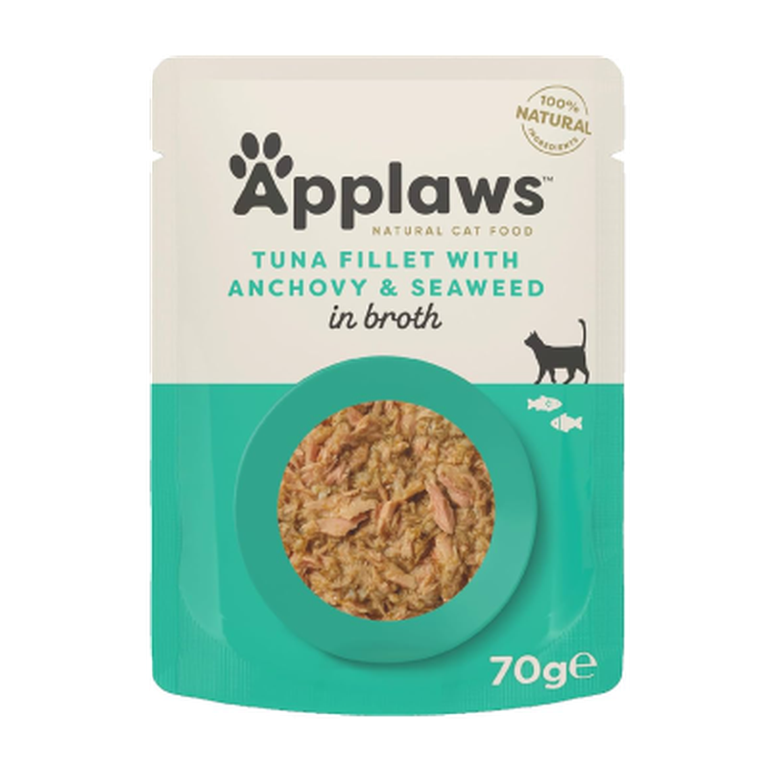 Applaw Ton cu Anchoa în sos nu conține nimic mai mult decât ingredientele enumerate și este o hrană complementară 100% naturală pentru pisici adulte.\n100% natural – Nimic adăugat, nimic ascuns\nFile de ton 60% – insistăm doar pe ingrediente de cea mai înaltă calitate\nFile de ton – sursă naturală de Omega-3