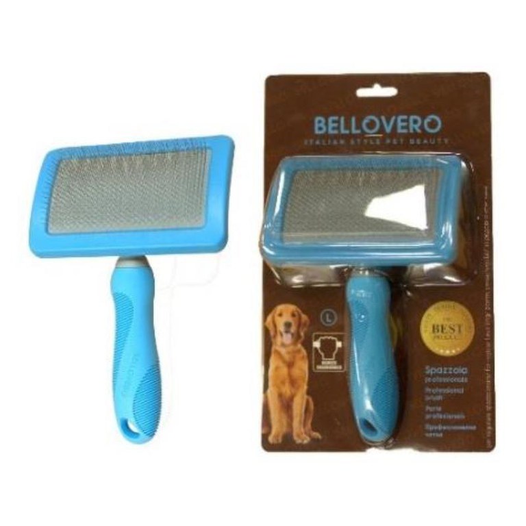 Bellovero Perie L pentru caini este o perie perfecta pentru a indeparta delicat murdaria, subparul si parul mort, fara a zgaria pielea animalului. Ideala pentru cainii cu parul lung, deoarece patrunde adanc in blanita.