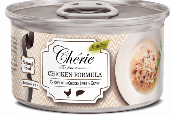 Mix Cherie Adult Cat Grain Free Mix de Pui si Ficat in sos\n\nCarne alba de pui tocata cu adaos de ficat de pui delicios. Se serveste intr-un sos special si bogat Cherie.\nHrana completa pentru pisici adulte, fara cereale. Carne naturala 100 % proaspata.\nNu provoaca reactii alergice chiar si la cele mai sensibile pisici. Fara cereale, grau, porumb, soia si gluten.\n\nNutritie 100% completa si echilibrata.Hrana naturala pentru pisici Numai ingrediente naturale, carne de la animale fara hormoni de crestere, fructe de mare capturate din ocean. Fara arome, coloranti si conservanti artificiali.Fara cereale, grau, porumb, soia si gluten.Nutritie pentru pisici contine cele mai importante elemente nutritionale pentru pisici: Vitamina E si taurina.Materiile prime folosite pentru fiecare conserve sunt curatate, ambalate si finisate in 2 ore pentru a mentine prospetimea alimentelor. Acesta este unul dintre motivele cheie pentru care Chérie este o mancare atat de gustoasa indragita de pisici.