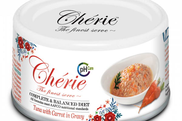 Ton fraged cu felii de morcovi in sosul special Cherie\n\nConservele Cherie sunt imbogatite cu clorura de amoniu pentru a mentine nivelul ph-ului din urina sub 6,8, pentru ca pisicile cu boli cronice de rinichi sa o poata manca.\nNu provoaca reactii alergice chiar si la cele mai sensibile pisici. Fara cereale, grau, porumb, soia si gluten.\nAceste feluri de mancare au fost special concepute pentru a satisface nevoile individuale ale fiecarei pisici. Ajuta pisica sa isi mentina un sistem urinar sanatos si functional.\n\nNutritie 100% completa si echilibrataProdusele sunt conforme cu standardele nutritionale AAFCOPH tinta al urinei < 6.8Grain & Gluten freeFara cereale, grau, porumb, soia si gluten100% ton salbatic ca prim ingredientGatit la aburiUnul dintre cele mai bune si sanatoase moduri de a gati pentru a pastra nutrientii naturaliTaurina – un aminoacid esential necesar tuturor pisicilor, a fost adaugata tututor conservelor Chérie Complete & Balanced.Materiile prime folosite pentru fiecare conserve sunt curatate, ambalate si finisate în 2 ore pentru a mentine prospetimea alimentelor. Acesta este unul dintre motivele cheie pentru care Chérie este o mancare atat de gustoasa indragita de pisici.