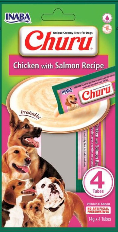Churu Inaba Recompense Cremoase pentru Caini cu Pui si Somon, 14 g x 4 buc