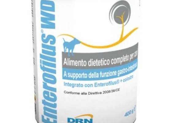 Enterofilus WD, dieta umeda, 400 g este o dieta complet echilibrata pentru caini. Indicata in diminuarea aparitiei riscurilor de dereglari acute ale absorbtiei la nivel intestinal in timpul perioadelor de convalescenta sau diaree.\nContine: Carne de pui, orez, carne de curcan, ulei de cocos, seminte de in, ulei de peste, drojdie de bere uscata, FOS, drojdii hidrolizate, minerale, pulpa de sfecla, granule fermentate de papaya, pectine din citrice, polifenoli vegetali, saruri acide grase, saruri minerale, colostrum.Ambalaj: Cutie 400 g