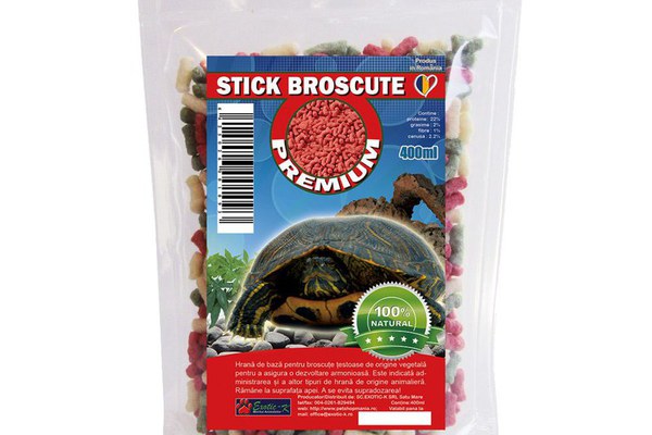 Hrana de baza pentru broscute testoase de origine vegetala pentru a asigura o dezvoltare armonioasa.\nEste indicata administrarea si a altor tipuri de hrana de origine animaliera.\nRamane la suprafata apei.\nA se evita supradozarea!