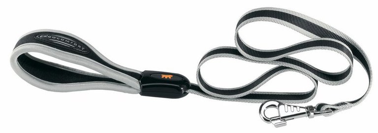 Ergocomfort este o lesa pentru caini, realizata din materiale de calitate superioara.\n- Rezistenta, fiind realizata din nailon.\n- Confort maxim datorita captuselei de o textura moale.\n- Va ofera control asupra miscarilor cainelui cu ajutorul manerului ergonomic.\n- Foarte utila, carabiniera va ajuta sa prindeti cu usurinta lesa de zgarda cainelui.\nDimensiuni: 15 mm x L 120 cm \nCuloare: gri