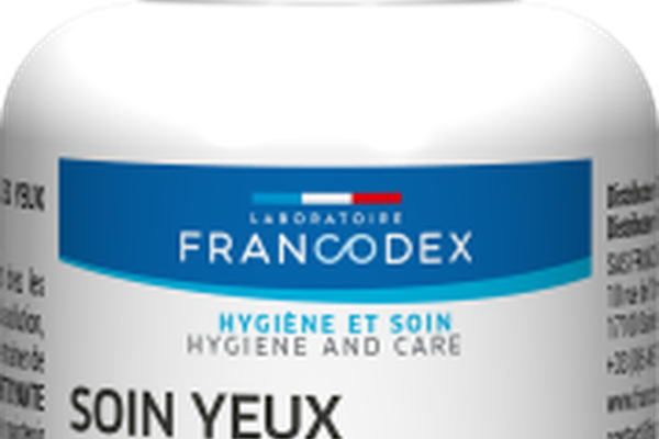 Soluție pentru igiena ochilor pentru câini și pisici.\nMade in France\n\nPh fiziologic\nCurăță cu blândețe conturul ochilor\n\nSoluția pentru igiena ochilor de la Francodex are o formulă blândă, cu un pH identic cu cel al lacrimilor pentru a putea menține igiena perfectă a conturului ochilor, a pleoapei și elimină resturile uscate și calmează iritațiile.