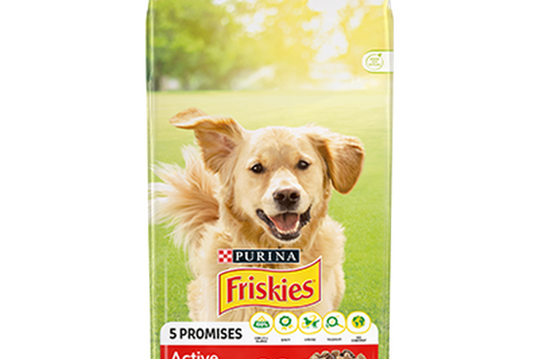 Descoperă hrana uscată pentru câini Purina Friskies, Adult, Active, cu Vită, 2.4 kg special concepută pentru câini foarte activi, cu multă energie.\nFriskies® 5 promisiuni pentru un câine fericit și sănătos: 5 promisiuni pentru că nouă ne pasă:\n- Nutriție: 100% nutriție completă, echilibrată și gustoasă, cu proteine animale de calitate- Calitate: Efectuăm sute de verificări zilnice pe parcursul procesului nostru de fabricație- Expertiza: Dezvoltată de nutriționiștii Purina- Trasabilitate: Fabricat cu ingrediente de înaltă calitate, selectate cu atenție de la furnizori cunoscuți și de încredere- Obiectiv 2025: Ne angajăm să folosim ambalaje 100% reciclabile sau reutilizabile până în 2025\nToate rețetele noastre nu au coloranți, arome sau conservanți artificiali adăugați.