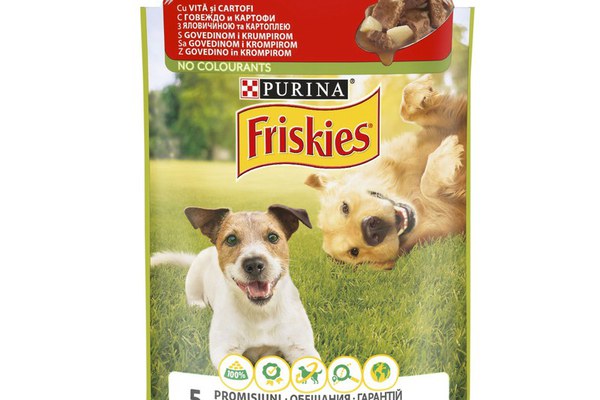 Friskies Dog Vita si Cartofi este o hrana umeda pentru cainii adulti. Reteta cu bucati gustoase de carne de vita si cartofi in sos consistent asigura hrana completa si echilibrata de care cainele dumneavoastra are nevoie.\nSursa de proteine de calitate si suplimentarea cu substante minerale si vitamine fac ca produsul sa indeplineasca toate cerintele nutritionale necesare pentru mentinerea sanatatii si vitalitatii cainelui.