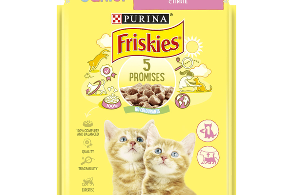 Puiul tau de pisica are nevoie de o nutritie speciala pentru o crestere sanatoasa. Friskies Junior este o hrana completa si echilibrata pentru pisicile junior. Asigura toti nutrientii, vitaminele si mineralele esentiale de care acestea au nevoie pentru o buna tranzitie de la laptele matern la alimentele solide pana ajunge la varsta de 1 an.\nAsigura-i un start bun in viata cu Friskies Junior astfel incat sa te surprinda si sa te incante in fiecare zi!