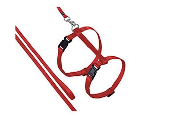 HAM SI LESA PISICI CULOARE ROSIE\nModel rezistent si confortabil, usor de ajustat, hamul are 2 bucle atasate pentru fixatie rapida.Dimensiuni:110 cm x 10 mm.\n