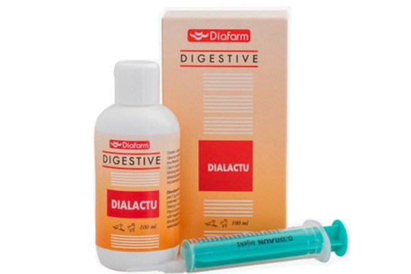 Hrana dietetica complementara pentru caini si pisici.\nScop nutritiv special: insuficienta pancreatica exocrina. Remediu pentru indigestie. Utilizati in caz de constipatie.\nDialactu contine lactuloza care ajuta la legarea apei in intestin si prin aceasta creste volumul intestinal, normalizand astfel miscarile intestinale si prevenind constipatia.
