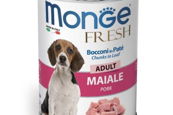 Hrana umeda caini, Monge Fresh Chunks Adult, Porc, 400 g este o hrana completa si echilibrata pentru caini adulti\n\nIncluderea carnii proaspete de porc garanteaza digestibilitatea ridicata\nCu legume ca sursa ideala de carbohidrati, care ofera energie zilnica si, de asemenea, o sursa de fibre naturale, vitamine si minerale