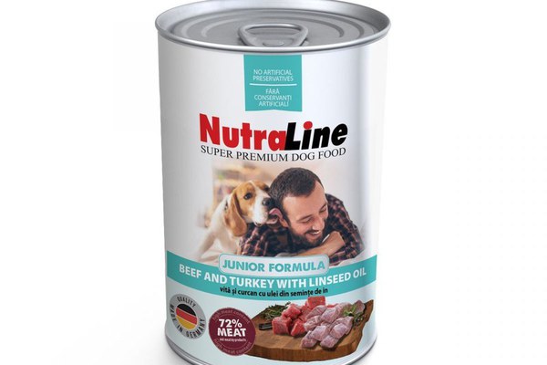 Hrana umeda caini, Nutraline Junior Vita, Curcan & Ulei de In, 800 g