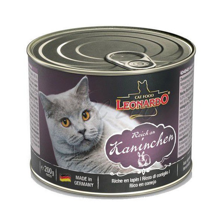 Hrana umeda pisici, Leonardo Iepure, 200 g este o hrană umeda SUPER PREMIUM pentru pisici, cu iepure (minim 65 % carne iepure)
