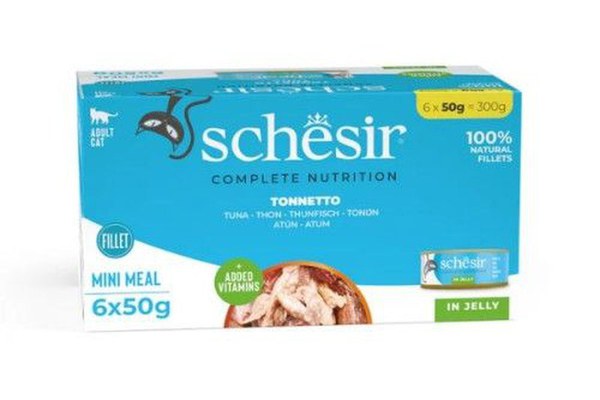Hrana umeda pisici, Schesir, Ton in Jeleu, 6x50 g este o hrana completa umeda pentru pisici adulte, cea mai buna recomandare pentru pisici, in conformitate cu dieta lor naturala si nevoile de hidratare ale felinelor.\nNoua reteta contine vitamine si minerale aditionale.