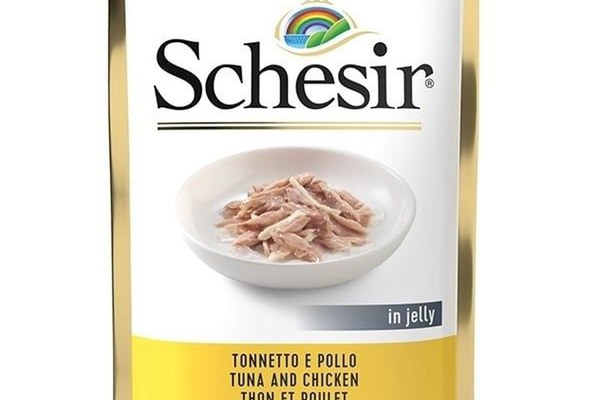 Hrana umeda pentru pisici Schesir plic ton si pui in jeleu 85gr este o hrana complementara destinata pisicilor adulte.\nTonul si puiul sunt ingredientele principale, combinate cu un topping gustos de sunca.