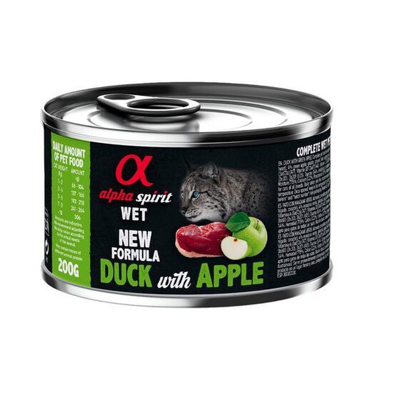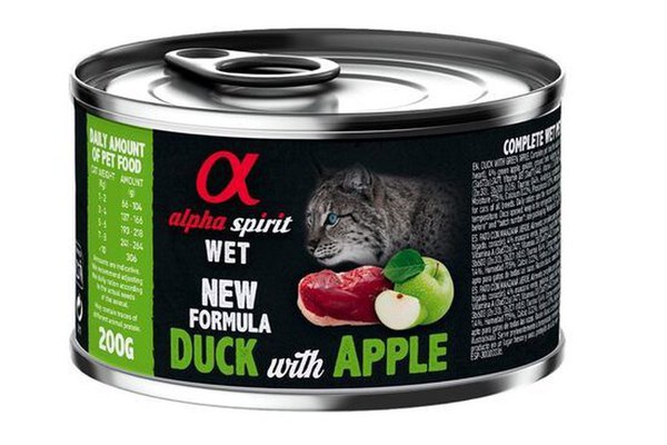 Hrană umedă Premium pentru pisică Alpha Spirit, cu rață și măr, 200 g