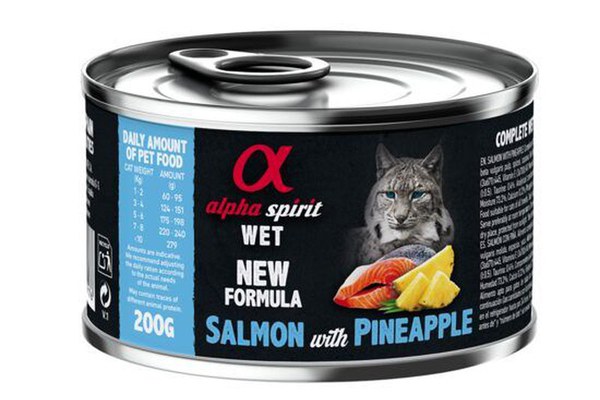 Hrană umedă Premium pentru pisică Alpha Spirit, cu somon și ananas, 200 g