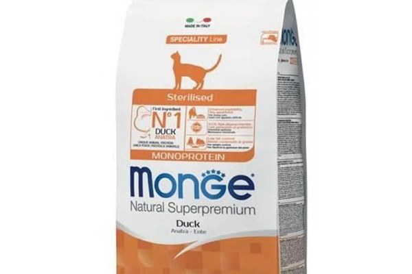 Hrana uscata pisici, Monge Natural Monoprotein Sterilised, Rata, 1.5 kg este o hrana completa si echilibrata pentru pisici adulte.\nHrana este conceputa pentru a mentine bunastarea pisicii dvs. sterilizate, prin continutul redus de grasimi ce asigura controlul greutatii corporale.\nFormulata cu o sursa unica de proteina animala (rata), imbogatita cu Xilo-oligozaharide (XOS), prebiotice naturale ce mentin sanatatea intestinala.\nIncluderea ingredientelor functionale, cum ar fi macesul cu efect antioxidant si Yucca schidigera, pentru controlul mirosului fecalelor, sustin calitatea vietii pisicilor.