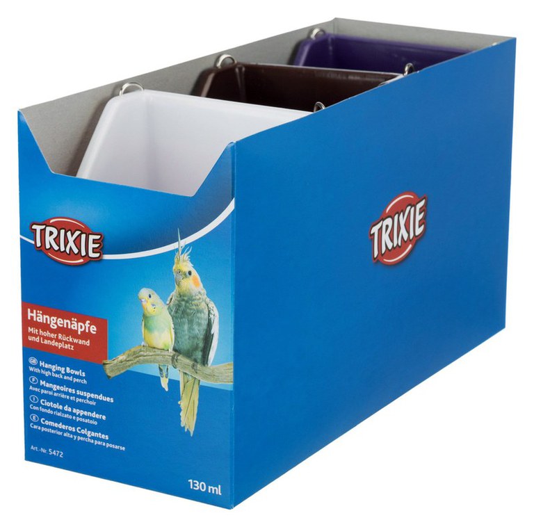 Bol cu suport pentru agatat. Acest bol este potrivit pentru apa sau hrana.\nMaterial: plastic\n\nMasuratori: 130 ml / 8 × 7 cm\nCapacitate: 130 ml\nInaltime: 7 cm\n\nDiverse culori. Selectarea culorilor nu este posibila. Depinde de disponibilitatea stocului.