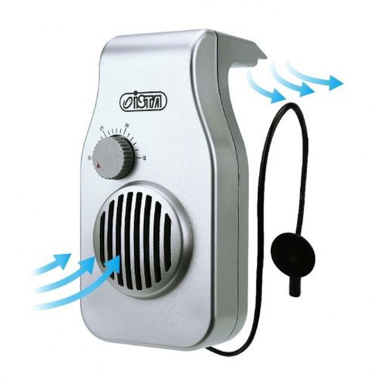 Ventilator cu senzor precis de temperatura si buton pentru ajustarea acesteia.Doua cai de ajustare a debitului de aer.Ventilatorul scade temperatura apei cu 2-4 grade.Mod de utilizare:- se ataseaza pe sticla acvariului- senzorul se plaseaza in apa si se ajusteaza temperatura dorita- ventilatorul va porni automat atunci cand temperatura apei din acvariu va creste peste temperatura setata in termostat - ventilatorul se opreste automat in momentul in care temperatura apei va scadea sub temperatura setata pe termostat.\n