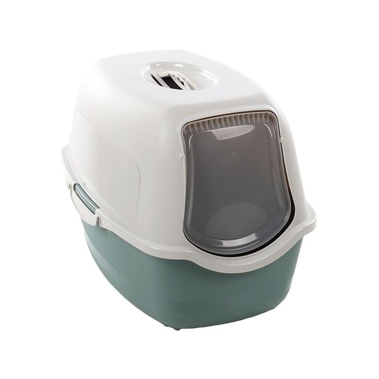 Litieră realizată din material plastic reciclat\nInclude filtru de cărbune pentru absorbția mirosurilor\nMâner pentru facilitarea manipulării\nPartea superioară detașabilă și ușă batantă\nColțuri rotunjite pentru o curățare ușoară\n\nEste realizată din material plastic reciclat și reciclabil, rezistent și durabil, non-toxic pentru pisici.\n\nPartea superioară este prevăzută cu orificiu pentru aerisire cu un filtru de cărbune pentru absorbția mirosurilor neplăcute.\nLitiera este acoperită, pentru a oferi felinei un spațiu intim, în care ea să se simtă în siguranță și pentru a limita împrăștierea așternutului, excrementelor și a mirosului acestora.\nRama dublă, plasată la nivelul unde se atașeză acoperișul, previne împrăștierea așternutului murdar în exteriorul litierei.\nPartea transparentă a litierei se poate ridica, pentru ca igienizarea litierei să se desfășoare fără probleme.\nDeschiderea largă permite accesul facil al felinei în interior. Totodată îi permite să mențină sub observație spațiul din jurul litierei (aspect deosebit de important pentru ca felina să se simtă în siguranță).\nAccesul în interior este acoperit cu o clapetă batantă, transparentă.\nAcoperișul litierei este fixat de pereții laterali ai bazei, prin intermediul unor cleme.\nPoate fi ridicat pentru a permite o igienizare ușoară a interiorului.\nÎn partea superioară are un mâner, care permite manevrarea cu ușurință a litierei.\n\nDIMENSIUNE: 56 (L) x 39 (l) x 39.5(h) cm.