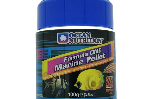 Ocean Nutrition FormulaOne Marine Pellets Medium 100g, hrana esentiala sub forma de granule pentru pesti tropicali marini carnivori/omnivori.Contine usturoi pentru imbunatatirea rezistentei la boli, krill pentru culoare, fructe de mare proaspete, plankton si spirulina.Nivel ridicat de proteine marine de calitate rafinata.\nProducator: Ocean Nutrition Belgia
