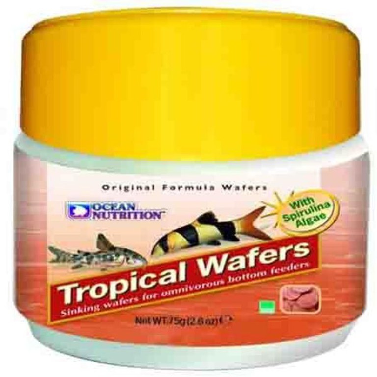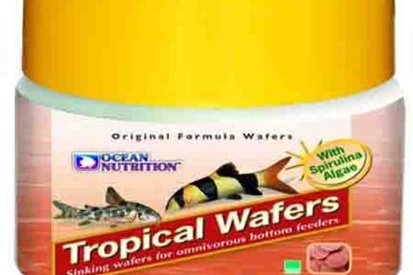Ocean Nutrition Tropical Wafers, hrana uscata completa sub forma de wafers +/-13 mm.\nTropical Wafers sunt foarte gustoase, usor digerabile si imersibile, asigurand o nutritie excelenta pestilor omnivori care se hranesc pe fundul apei, precum pestii Catfish si Clown Loach. \nDrajeurile au margini foarte subtiri, astfel ca pestii sa le poata manca usor. \nImbogatite cu faina de Krill si Spirulina, drajeurile asigura astfel o dieta extrem de echilibrata pestilor. \nTropical Wafers sunt produse din cele mai fine ingrediente, atent selectionate, sub un control riguros al calitatii, pentru a asigura pestilor cea mai buna nutritie. Asigura toate vitaminele, mineralele si proteinele de care au nevoie pestii.\nInstructiuni de hranire: \nLa fiecare hranire administrati atat cat pestii pot consuma in cateva minute.\nVariati volumul de hrana in functie de numarul si dimensiunea pestilor.\n Recomandari pentru pastrarea hranei:\nDeschiderea si inchiderea repetata a ambalajului pune hrana in contact cu bacteriile si umiditatea, calitatea hranei reducandu-se continuu, ceea ce influenteaza continutul de vitamine si prospetime a hranei, motiv pentru care se recomanda ca dupa desigilarea cutiei, hrana sa fie consumata in maxim 3 luni.\nDupa fiecare utilizare inchideti bine cutia de hrana, astfel incat nici aerul, nici lumina sa nu ajunga la mancare.\nNu sunt indicate cutiile transparente pentru hrana deoarece majoritatea vitaminelor sunt distruse de UV-ul ridicat al luminii.\nIngrediente: Faina alba de peste, faina de grau, faina de soia, faina de krill, spirulina, gluten din grau, sare, ulei de icre de somon, lecitina, vitamine (vitamina C stabilizata, tocoferol, biotina, cianocobalamina, niacina, riboflavina, tiamina), aminoacizi selectionati (dl-metionina, l-lyisina, taurina), oligoelementa (clorura de calciu, iodura de potasiu, sulfat de fier, sulfat de mangan, carbonat de magneziu, sulfat de zinc), conservanti (sorbat de potasiu, etoxiquin), pigmenti (astaxantina, cantaxantina) si beta glucan.\nComponenta analitica:\nProteine brute (min) 43.0%\nGrasimi brute (min) 6.0%\nFibre brute (max) 2.8%\nCenusa (max) 11.4%\nUmiditate (max) 10.0%\nProducator: Ocean Nutrition Belgia
