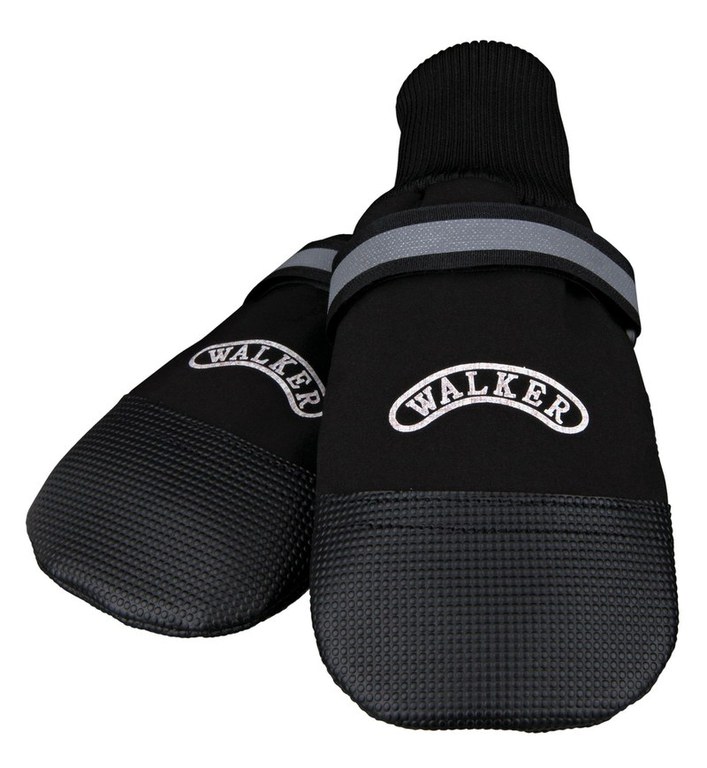Protectie maxima pentru labutele cainilor.\nIncaltamintea pentru caini e indispensabila deoarece ofera diverse forme de protectie. Mai jos gasiti cateva sfaturi utile pentru alegerea incaltamintei potrivite pentru cainele dumneavoastra:\nAceste ghetute au fost concepute special pentru caini. Ele reduc riscul infectiilor si in caz de rani la labute, ajuta la pastrarea igienei in zonele afectate. Sunt grozave de purtat iarna sau in timpul plimbarilor lungi pe asfalt sau poteci pietruite.\nGhetutele sunt confortabile. Partea exterioara e fabricata din poliester flexibil care lasa piele sa respire si inserturi cu piele falsa care ofera un aspect sportiv ghetelor si ajuta la mentinerea labutelor uscate. Talpile sunt din cauciuc termoplastic si nu aluneca pe suprafete alunecoase. Aceste incaltari protejeaza labele cainelui dumneavoastra de frig, caldura, pietris, pietre ascutite, sare, etc. Marimea: luati o ruleta si masurati cu atentie cea mai lata zona a labutei - asigurati-va ca masurati in timp ce cainele se sprijina pe labuta respectiva, deoarece atunci ea e cel mai "extinsa". Acesta e cel mai important pas pentru a va asigura ca alegeti un pantof potrivit. E posibil ca latimea labutei sa fie intre doua marimi; in acest caz, alegeti incaltamintea cu marimea mai mare. Va trebui sa masurati si lungimea piciorului cainelui, pentru a lua incaltamintea cu lungimea buna. Majoritatea produselor din gama noastra de incaltaminte pentru caini au marimi intre XS-XXL, astfel ca sunteti acoperiti, fie ca aveti un Pug sau un Labrador. Rolul incaltamintei: Iarna: cainele poate aluneca usor pe gheata si zapada. Incaltamintea va tine de cald si va minimaliza riscul de alunecare. Ati putea dori si un pulover gros care sa ii tina de cald cainelui in zilele friguroase. Sport: cainii sportivi parca se grabesc mereu sa ajunga dintr-un loc in altul, fapt ce poate fi daunator pentru labute. Incaltamintea va ramane fixa cand cainele alearga si ii va proteja labutele pe teren dur sau accidentat. Ranile: pastrarea ranilor de pe labute curate si uscate poate fi foarte dificil! Incaltamintea pastreaza igiena din zona ranii si ajuta deci la vindecare, iar cainele nu va putea linge rana.\n\nPot fi folositi ca protectie pentru ploaie, gheata sau zapada.\nAu sistem de prindere Velcro reflectorizanta\n\nLat> 9.5cm Lung> 14cm Culoare: negru Pachet 2 bucati Dimensiuni:\n\nXS (exemplu Chihuahua, Yorkshire Terrier)\nS (exemplu West Highland Terrier, Jack Russell)\nM (exemplu Border Collie, Beagle)\nL (exemplu Golden Retriever, Labrador)\nXL (exemplu German Shepherd, Bernese Mountain Dog)\nXXL (exemplu Rottweiler, Hovawart)XXXL (exemplu Newfoundland, Saint Bernard )