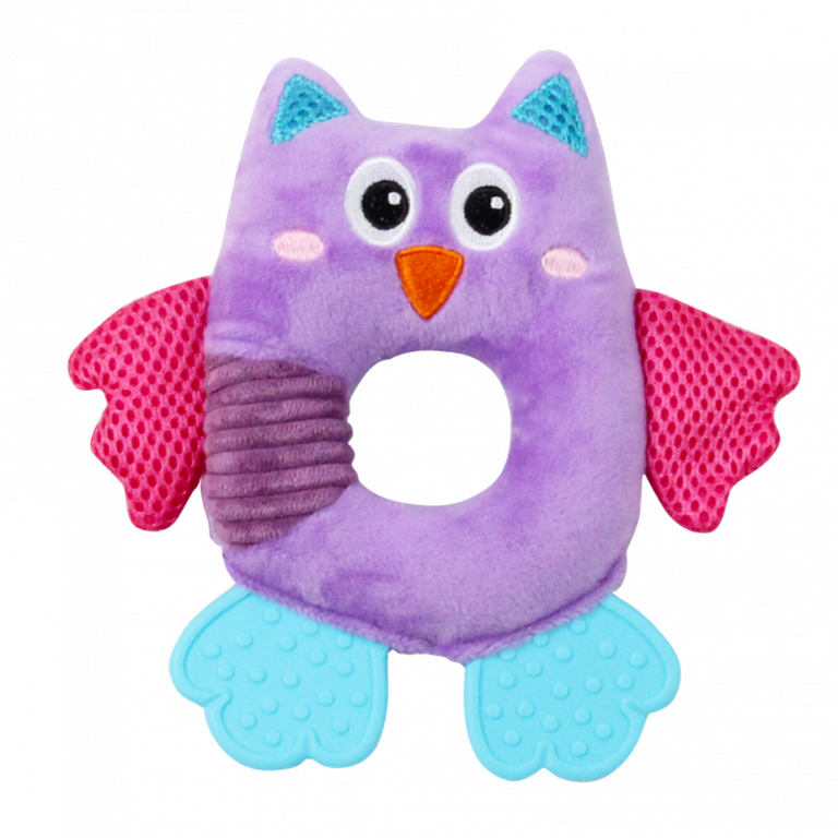 Jucaria in forma de bufnita din plus cu picioare din termoplastic rezistent, vesela si draguta este adorata imediat de catei, dar si de cainii adulti. Intrucat este prevazuta cu o chitaitoare, este irezistibila, incitand cateii la perioade nesfarsite de joaca si distractie.\nDatorita culorilor vii, se poate vedea imediat la locul de joaca, iar designul este special ales pentru a fi usor de prins si de transportat cu gura.\nEste realizata din materiale de calitate premium, sigure pentru sanatatea cainelui si ofera mai multe tipuri de suprafete texturate diferit pe care animalele adora sa le roada.Se poate folosi in interior si in exterior si se curata usor in masina de spalat. Intrucat satisface instinctul de ros si este incitanta, jucaria previne plictiseala si comportamentul distructiv al cainilor lasati singuri in casa. Ofera-i cainelui tau bufnita din plus pentru a-i imbunatati calitatea vietii, mentinandu-l activ si fericit.Nu ai cum sa dai gres cu aceasta alegere!\n\nDimensiune jucarie: 16 Cm
