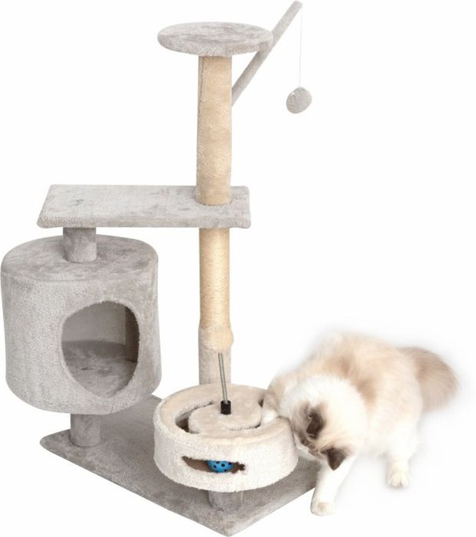 Ofera-i pisicii tale un spatiu de joaca atractiv si antrenant cu ajutorul ansamblului de joaca Cat Sisal Cave. Acesta poate fi amplasat in orice loc din casa, unde pisica ta se poate juca in voie.\nAcest ansamblu este prevazut cu mai multe zone pe care pisica le poate explora: un sisal de care isi poate ascutii unghiile, un spatiu de joaca prevazut cu o mingiuta si cu o bila pe un arc extensibil, o zona de dormit tip fotoliu, dar si doua spatii la inaltime pe care pisica poate sta.\nAnsamblul Cat Sisal Cave are o inaltime de 85 cm si este ideal pentru pisicile de orice varsta. Acestea se pot catara pe sisal si pot alege activitatea pe care vor sa o faca, fara a se plictisi.\nMaterialul din care este conceput este unul rezistent, la suprafata fiind prevazut cu un material moale si placut la atingere, confortabil pentru pisici.