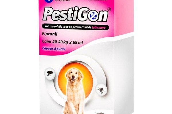 Pestigon Dog L (20-40 kg) 4 pipete - Soluție spot-on pentru caini in tratamentul infestației cu purici si capuse, cu efect insecticid imediat, actioneaza persistent impotriva infestatiilor noi cu purici adulti pana la 8 saptamani.\nCompozitie - Fiecare pipetă de 2.68 ml conține:\n\nSubstanța activă: Fipronil 268 mg\nButilhidroxianisol (E320): 0,536 mg\nButilhidroxitoluen (E321): 0,268 mg\n\nIndicații \n\nPentru tratamentul infestațiilor cu purici (Ctenocephalides felis). Produsul are efect insecticid imediat și acționează persistent împotriva infestațiilor noi cu purici adulți până la 8 săptămâni.\nProdusul are o eficacitate acaricidă persistentă împotriva Ixodes ricinus pe o durată de până la 2 săptămâni, împotriva Rhipicephalus sanguineus pe o durată de până la 3 săptămâni și împotriva Dermacentor reticulatus pe o durată de până la 4 săptămâni.\nDacă căpușele din aceste specii sunt prezente la aplicarea produsului, acestea nu vor muri în totalitate în primele 48 de ore, însă pot muri în decurs de o săptămână.\nProdusul poate fi utilizat ca parte a unui program de tratament pentru dermatita alergică la purici atunci când aceasta a fost diagnosticată anterior de medicul veterinar.\n\nContraindicații \n\nA nu se utiliza la căței cu greutatea corporală sub 2 kg.\nÎn absența informațiilor disponibile, produsul nu se va utiliza la căței cu vârsta mai mică de 8 săptămâni.\nA nu se utiliza la animale bolnave (de ex. boli sistemice, stări febrile...) sau în stare de convalescență.\nA nu se utiliza la iepuri, deoarece ar putea cauza reacții adverse și chiar decesul.\nA nu se utiliza în cazuri cunoscute de hipersensibilitate la substanța activă sau la oricare dintre excipienți.\n\nReacții adverse \n\nÎn cazul în care animalul linge zona de aplicare, se poate observa o scurtă perioada de hipersalivație datorită, în principal, naturii solventului.\nPrintre efectele adverse extrem de rare, semnalate după folosirea produsului, se numără reacții cutanate tranzitorii în zona aplicării (decolorări ale pielii, alopecie locală, prurit, eritem) și prurit generalizat sau alopecie. În cazuri excepționale, s-au observat, după utilizare, hipersalivație, simptome neurologice reversibile (hiperestezie, depresie, simptome nervoase) vomă sau simptome respiratorii.\nA nu se supradoza.\nDacă observați efecte grave sau alte efecte secundare care nu sunt menționate în acest prospect, vă rugăm să informați medicul veterinar.\n\nSpecii țintă Câini.\nPosologie pentru fiecare specie, cale și mod de administrare \nCalea de administrare:\n\nSe administrează prin aplicare locală pe piele. Numai pentru uz extern.\nAplicați produsul, în conformitate cu greutatea corporală a animalului, direct pe piele.\n\nDozare - 1 pipetă de 0.67 ml /câine cu greutatea corporală peste 2 kg și până la 10 kg.\nModul de administrare:\n\nȚineți pipeta în poziție verticală.\nApăsați ușor capătul îngust al pipetei pentru a vă asigura că tot conținutul este în corpul pipetei.\nRupeți capătul predecupat al pipetei spot-on de-a lungul liniei marcate.\nFaceți o cărare în blană în regiunea dintre omoplați, până ce pielea devine vizibilă.\nAplicați vârful pipetei pe piele și strângeți ușor, în unul sau două puncte, golind conținutul pe piele.\nÎndoiți pe diagonală pentru a expune linia crestată.\nRupeți trăgând la nivelul liniei crestate.\nRăsuciți vârful pentru a deschide\nFaceți o cărare în blană și aplicați pe piele.\n\nRecomandări privind administrarea corectă \nEste important să ne asigurăm că acest produs este aplicat într-o zonă în care animalul nu poate să lingă produsul și să ne asigurăm că animalele nu se ling unele pe celelalte după tratament. Se va avea grijă ca blana să nu fie umezită cu produs în mod excesiv, deoarece acest lucru poate cauza un aspect lipicios al blănii la locul de aplicare al tratamentului. Dacă acest fenomen apare, el va dispărea în 48 de ore după tratament. Pentru combaterea optimă a infestației cu purici și/sau căpușe, schema de tratament se va baza pe situația epidemiologică locală. În absența studiilor de siguranță, intervalul minim între tratamente este de 4 săptămâni. Animalele trebuie cântărite cât mai exact înainte de tratament.\nTimp de așteptare Nu se aplică.\nPrecauții speciale pentru depozitare \n\nNu lăsați la îndemâna și la vederea copiilor.\nAcest produs medicinal nu necesită condiții speciale de temperatură pentru depozitare.\nPăstrați-l în cutia originală pentru a-l proteja de lumină și umezeală. A nu se utiliza după data expirării menționată pe etichetă.\n\nAtenționări speciale \nProdusul nu previne atașarea căpușelor de animale, dar căpușele vor fi omorâte în primele 24-48 de ore de la atașare, înainte de a ajunge la sațietate, reducându-se astfel riscul transmiterii bolilor. Odată omorâte, căpușele cad, de cele mai multe ori, de pe animal, iar cele rămase pot fi îndepărtate trăgând ușor. În cazul folosirii ca parte a tratamentului strategic pentru controlul dermatitei alergice produse de purici, se recomandă aplicări lunare la pacientul alergic și la ceilalți câini din casă. Pentru combaterea optimă a infestațiilor cu purici într-o casă cu mai multe animale de companie, toți câinii și toate pisicile din casă trebuie tratate cu un insecticid adecvat. Unele căpușe izolate pot rămâne pe animal. Din acest motiv, transmiterea unor boli infecțioase, în condiții favorabile acestora, nu poate fi exclusă în totalitate. Puricii de pe animalele de companie adesea infestează coșul animalului, culcușul și zonele în care stă de obicei, cum ar fi covoarele și obiectele moi de mobilier care trebuie tratate, în cazul infestațiilor masive și înaintea luării măsurilor de combatere, cu un insecticid adecvat și aspirate regu