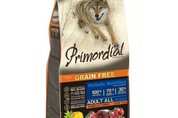 Primordial Grain-Free Holistic Dog Adult Tuna & Lamb este o hrana completa pentru caini adulti de orice talie, fara cereale, bogata in proteine si usor digerabila.\nAnaliză garantată:\n\nUmiditate: 8%,\nProteină brută: 30%,\nGrăsimi și uleiuri brute: 19%,\nCenușă brută: 8.3%,\nFibră brută: 2.4%,\nEnergie metabolizabilă: 3950 Kcal/kg\n\nProdusul trebuie administrat uscat. Cainele trebuie sa aiba intotdeauna apa proaspata disponibila. Depozitati intr-un loc uscat si racoros.