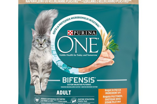 Caracteristici\n\nReduce depunerea de tartru cu până la 40%*.\nTract urinar sănătos, susţinut de minerale echilibrate.\nAbsorbție mare de nutrienți, datorită ingredientelor de înaltă calitate.\n\n*Studiu Purina.\n\nHrana uscată Purina ONE Adult a fost creată de experții de la Purina pentru a satisface toate nevoile nutriționale ale pisicilor cu vârsta de peste 1 an. Aceasta ajută la reducerea acumulării de tartru cu până la 40%*, contribuind la promovarea sănătății orale. Ingredientele de înaltă calitate folosite ajută absorbția nutrienților și ușurează digestia.\nPurina ONE BIFENSIS este o formulă nutrițională unică, cu bacterii funcționale benefice, care întărește sistemul natural de apărare al pisicii de la interior spre exterior.\nCreată de medicii veterinari și nutriționistii Purina, Purina ONE BIFENSIS Adult conține, pe lângă bacterii funcționale benefice, toți nutrienții cheie de care pisica ta are nevoie, inclusiv acizii grași Omega 6. Formula sa cu dublă apărare funcționează în paralel la interior, ajutând la sprijinirea producției naturale de anticorpi, și la exterior prin menținerea sănătății pentru piele și blană.\nFără coloranți adăugați, fără arome artificiale adăugate și fără conservanți artificiali adăugați. Pentru a oferi pisicii tale o dietă completă și echilibrată, care să satisfacă toate nevoile lor, încearcă Purina ONE® Adult.\n*Studiu Purina