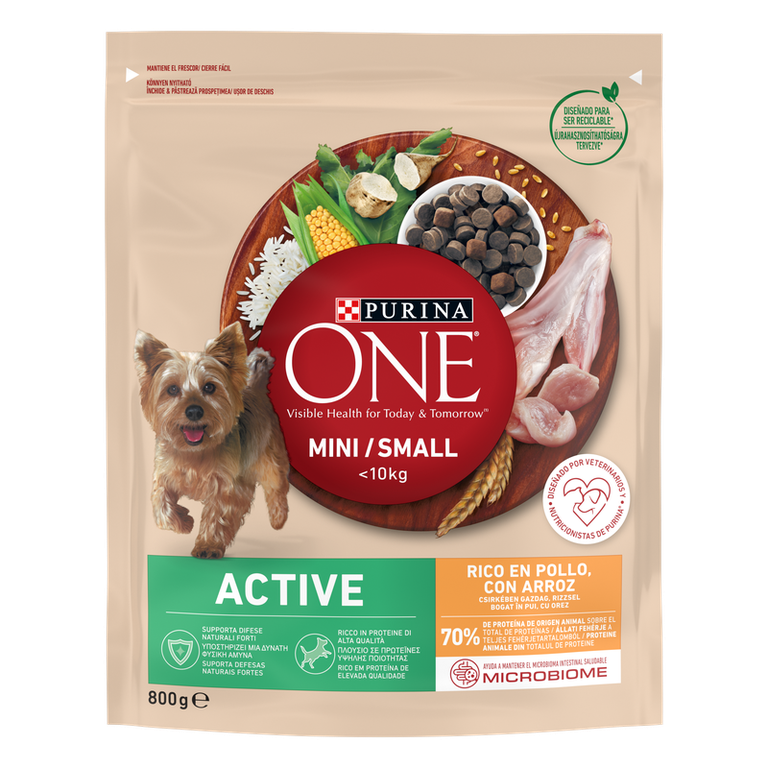 PURINA ONE MINI Active, Pui si Orez, hrana uscata pentru caini, 800 g