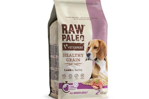 Raw Paleo Healthy Grain Lamb este o hrană completă și echilibrată pentru câinii adulți. Formula hranei se bazează pe carne de miel uscată unică, de înaltă calitate, care oferă nu numai un gust excelent, ci și o consistență ușor digerabilă. În plus, la producerea alimentelor a fost folosită carnea uscată de pasăre, care este o completare perfectă a compoziției alimentelor.\nHrana uscată pentru câini Healthy Grain se remarcă prin utilizarea a două tipuri de surse sănătoase de carbohidrați: orz și cartofi dulci. Orzul are un indice glicemic scăzut, ceea ce permite o eliberare treptată a energiei, asigurând o nutriție pe termen lung. Cartofii dulci oferă energie ușor digerabilă pe care corpul câinelui o poate folosi imediat după consum. Datorită acestei distribuții a energiei furnizate, organismul poate folosi eficient proteinele conținute în carne pentru a construi și menține masa musculară optimă, menținând în același timp starea excelentă a animalului de companie.Rețeta de cereale sănătoase Raw Paleo este hrana de zi cu zi perfectă pentru câinele tău adult. Hrana a fost îmbogățită cu nutrienți atent selecționați și aditivi funcționali, cum ar fi glucozamină și sulfatul de condroitină, care susțin funcționarea sănătoasă a articulațiilor câinelui tău. Conținutul de MOS și FOS are un efect pozitiv asupra bunei funcționări a sistemului digestiv, iar prezența merisoarelor susține sistemul urinar al câinelui. Hrana a fost îmbogățită cu acizi grași nesaturați Omega-3 și Omega-6, care ar trebui să fie incluși în fiecare hrană bună și sunt necesari pentru buna funcționare a organismului animalului dvs. de companie.Ai grijă de toate nevoile nutriționale ale animalului tău de companie. Alege o hrana uscata perfect echilibrata si valoroasa pentru animalul tau, destinata cainilor adulti, indiferent de varsta si rasa cainelui.RAW PALEO Healthy Grain este o linie de hrană pentru câini care oferă o nutriție completă. Se caracterizează printr-o compoziție transparentă, conținut ridicat de carne și aditivi funcționali selectați corespunzător.\nA fost creat pentru a satisface toate nevoile nutriționale ale câinilor mici și mari în fiecare etapă a vieții lor. Este o hrana premium pentru caini care ofera cea mai inalta calitate la un pret accesibil.\nCompoziția transparentă garantează ingrediente de înaltă calitate, fără aditivi inutile. Iar conținutul ridicat de carne uscată asigură cantitatea potrivită de proteine, necesară pentru sănătatea și starea câinelui.