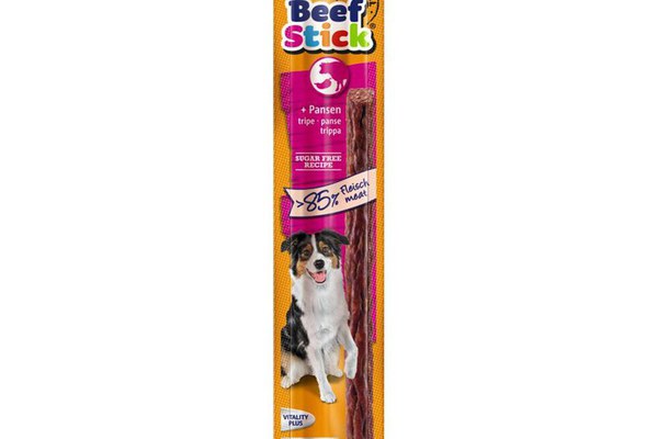 Baton caine Vitakraft Burta de Vita 1 Buc - Batoane pe placul cainilor prin gustul unic, aroma absolut delicioasa si un continut foarte ridicat de carne.\n- Perfecte pentru rasfat, recompensare sau doar pentru o gustare intre mese.- Batoane delicioase pentru cainele tau: sticksuri aromate cu un continut foarte mare de carne, preferate de orice caine.- Sunt foarte usor de portionat si pot fi gustarea ideala intre mesele principale, precum si recompensele potrivite pentru dresaj.- Prospetimea este mentinuta, fiind ambalate in portii individuale, sigilate . Astfel ii veti putea oferi cainelui de fiecare data o gustare aromata si proaspata.- Fara adaos de coloranti, conservanti sau potentiatori de aroma \n\nCalitatea inalta a snackurilor este demonstrata si prin faptul ca acestea nu contin deloc aditivi artificiali precum coloranti, conservanti sau intensificatori de gust.\nReteta e complet fara zahar si ofera in schimb vitamine - Beef-Stick® fiind snackuri naturale de ros potrivite speciei.\n\nVitakraft Beef-Stick®:• Snackuri de ros delicate pentru caini de orice rasa sau varsta• Ideale ca gustare intre mesele principale sau ca recompense de dresaj• Contin multa carne - 85%• Se portioneaza usor• Cu vitamine importante• Fara coloranti• Fara conservanti• Fara arome artificiale• In ambalaj individual sigilat pentru pastrarea prospetimiiRecomandare de hranire:\n\nPuteti oferi sticks-ul intreg sau rupt in bucatele mai mici ca gustare intre mesele principale.\n\n \n\nIngrediente: carne si derivate de origine animala 94%, din care 5.7% burta de vita), minerale, derivate de origine vegetala, cereale.\nConstituenti analitici: 33% umiditate, 30% proteine, 25% continut de grasimi, 3% fibre, 9% cenusa.\nAditivi nutritionali: 5000 i.E E672 Vit A, 500 i.E E671 Vit. D3.\n\nAmbalaj: 1 buc x 12 g