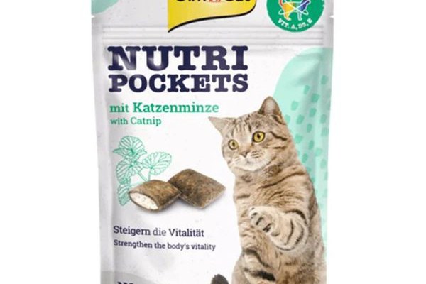 Recompense pentru pisici Gimpet Nutri Pockets cu iarba pisicii si multivitamine 60 g sunt pernute crocante cu o umplutura cremoasa si delicioasa cu ingrediente benefice sanatatii care va vor surpinde pisoiul iar si iar. El va iubi aceste snackuri si deoarece au mai putin de 2 calorii pe bucata, se va putea bucura de cateva bucatele în plus!\nPrimele trei ingrediente: cereale,carne si subproduse din carne.