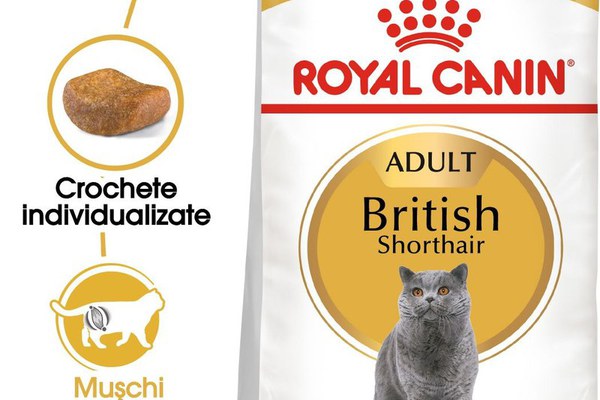 Caracteristici/beneficii principale\n\nTonus muscular\nSistem osteo-articular puternic\nSănătatea mușchiului cardiac\n\nROYAL CANIN® British Shorthair Adult este o formulă special concepută pentru a răspunde tuturor cerințelor nutriționale ale pisicilor adulte care fac parte din această rasă.\nDată fiind constituția puternică, solidă a pisicii dumneavoastră, nivelul de proteine din hrana ROYAL CANIN® British Shorthair Adult a fost adaptat în mod special pentru a contribui la menținerea masei musculare a acesteia. Formula este de asemenea îmbogățită cu L-Carnitină, un nutrient care contribuie la metabolizarea naturală a grăsimilor. \nIncluderea acizilor grași Omega-3 (EPA și DHA) contribuie la susținerea sănătății oaselor și articulațiilor pisicii dumneavoastră, ceea ce înseamnă că aceasta își poate menține nivelul normal de activitate fără a resimți vreun disconfort.\nMai mult, echilibrul de minerale special conceput din această hrană contribuie la susținerea și menținerea sănătății funcției cardiace a pisicii dumneavoastră.\nPentru a răspunde preferințelor fiecărei pisici, hrana ROYAL CANIN® British Shorthair Adult este de asemenea disponibilă ca hrană umedă în sos delicios. Dacă aveți în vedere hrănirea mixtă, nu trebuie decât să urmați recomandările noastre de hrănire pentru a vă asigura că pisica dumneavoastră primește cantitatea precisă a ambelor formule de hrană umedă și uscată pentru beneficii optime.
