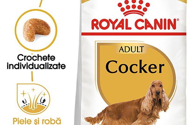 Caracteristici/ beneficii principale:\n\nPiele și blană sănătoase\nGreutate optimă\nFuncție cardiacă sănătoasă\n\nRecomandată câinilor din rasa Cocker Spaniel cu vârsta de peste 12 luni, formula ROYAL CANIN® Cocker Adult a fost special concepută pentru a răspunde cerințelor nutriționale ale câinelui dumneavoastră.\nPentru a menține sănătatea pielii și blănii câinelui dumneavoastră, formula ROYAL CANIN® Cocker Adult conține un complex exclusiv de nutrienți care susțin rolul de barieră al pielii. Îmbogățită cu ulei de Borago, vitamina A și acizi grași Omega-3 (EPA și DHA), această formulă nutrițională asigură suport pentru blana câinelui dumneavoastră și îi menține starea optimă de sănătate.\nCâinii din rasa Cocker Spaniel sunt predispuși să își depășească porția zilnică de hrană, dacă li se oferă prilejul. De aceea, este important să vă ajutați câinele pentru a ține sub control greutatea și conformația corporală. ROYAL CANIN® Cocker Adult are o formulă optimă, care include un conținut controlat de grăsimi, pentru a limita aportul energetic zilnic.\nFormula exclusivă ROYAL CANIN® Cocker Adult contribuie totodată la susținerea sănătății cardiace a câinelui dumneavoastră, datorită unui mix specific de nutrienți care mențin sănătatea mușchiului cardiac Mai mult, forma și dimensiunile crochetelor ROYAL CANIN® Cocker Adult sunt adaptate special pentru a corespunde caracteristicilor rasei Cocker Spaniel. Această formulă conține chelatori de calciu, care contribuie la încetinirea formării și acumulării de tartru, susținând astfel igiena dentară a câinelui.