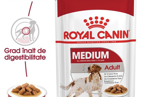 Caracteristici şi beneficii:\nConţinut de proteine de calitate superioară pentru a ajuta la menţinerea masei musculare\nAjută la susţinerea sistemului natural de apărare al câinelui tău datorită unui mix de vitamine şi prebiotice\nConţine un complex de vitamine pentru a ajuta la menţinerea vitalităţii\nCrochete cu dimensiuni adaptate maxilarului câinelui tău pentru a stimula masticaţia\nPe măsură ce câinele tău de talie medie intră în ultimii ani ai vieţii de adult, este posibil să nu mai fie la fel de activ ca înainte. Acesta îşi va păstra, însă, personalitatea sa jucăuşă, plină de viaţă şi loială. Prin urmare, câinele tău ar trebui să aibă o hrană adaptată taliei, vârstei şi cerinţelor sale nutriţionale.\nDestinată câinilor după vârsta de 7 ani, ROYAL CANIN® Medium Adult 7+ este o hrană completă şi echilibrată din punct de vedere nutriţional, special formulată pentru a răspunde cerinţelor specifice câinilor de talie medie şi pentru a-i susţine pe parcursul ultimilor ani ai vieţii de adult.\nCreată pentru câinii de talie medie cu o greutate între 11 şi 25 de kg, această formulă conţine un complex de vitamine ce ajută la menţinerea vitalităţii şi a stării generale de sănătate.\nPentru o dezvoltare musculară adecvată, câinii de talie medie au o activitate fizică intensă. Acest lucru nu se schimbă pe măsură ce înaintează în vârstă. Cu un conţinut adaptat de proteine de calitate superioară, această hrană este formulată pentru a ajuta câinii adulţi să îşi menţină masa musculară.\nDatorită unui stil de viaţă activ, câinii adulţi pot fi expuşi la factori de mediu care le pot slăbi sistemul imunitar. Această formulă conţine prebiotice şi un amestec de vitamine, printre care vitaminele C şi E, pentru a ajuta la susţinerea sistemului natural de apărare.\nAm adaptat forma şi dimensiunea crochetelor pentru a corespunde maxilarului şi comportamentului unic de hrănire al câinilor adulţi. Aceste crochete sunt special concepute pentru a ajuta la stimularea masticaţiei.\nROYAL CANIN® Medium Adult este disponibil în două texturi de hrană umedă: pate şi bucăţi în sos. Mixul de hrană umedă şi uscată contribuie la o hrănire variată a câinelui tău, făcându-i orele de masă mai interesante şi mai atractive. Crochetele creează un efect de periere mecanică a dinţilor pentru a ajuta la menţinerea sănătăţii dentare, în timp ce conţinutul de umiditate din hrana umedă ajută la hidratarea câinelui şi la menţinerea sănătăţii sale urinare.\nToate produsele ROYAL CANIN® sunt supuse unui amplu proces de control al calităţii pentru a garanta o hrană de înaltă calitate.\nEchipa noastră de oameni de ştiinţă creează formule adaptate cerinţelor nutriţionale specifice câinilor de talie medie, folosind nutrienţi de calitate superioară şi ţinând cont de mediul înconjurător.