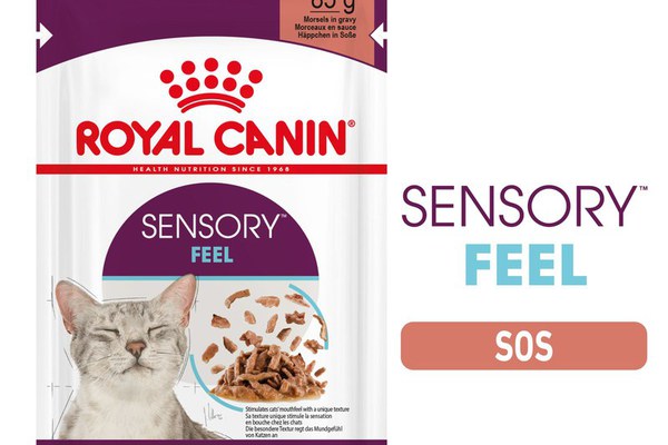 ROYAL CANIN® Sensory Feel este o formulă nutriţională deosebit de apetisantă, cu texturi unice ce contribuie la stimularea senzaţiei bucotactile a pisicii dumneavoastră (percepţia texturii fizice a hranei la nivelul cavităţii bucale).\nDatorită tehnologiei inovative de fabricare, mixul de bucăţi asemănătoare făşiilor de carne în sos au caracteristici fizice care oferă senzaţii ale texturii ce surprind plăcut pisica şi îi stimulează simţul tactil. Această reţetă este special creată pentru a se potrivi profilului macro-nutriţional preferat instinctiv de către pisicile adulte. Conţine de asemenea un mix de nutrienţi care susţin sănătatea aparatului urinar al pisicii dumneavoastră adulte.\nGama de produse ROYAL CANIN®SENSORY include de asemenea formulele nutriţionale Sensory Smell şi Sensory Taste, fiecare dintre ele având o reţetă atractivă, cu rolul de a stimula apetitul pisicii şi a crea o experienţă de hrănire bogată în stimuli senzoriali.\nOferiţi pisicii un mix de hrană uscată şi umedă pentru o diversitate de texturi ce contribuie suplimentar la stimularea apetitului. Respectaţi cantitatea zilnică recomandată pentru a asigura pisicii porţia optimă de hrană.